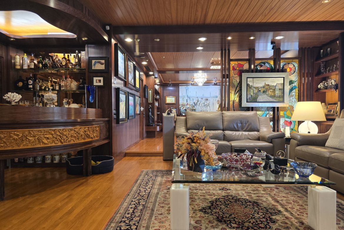 Los acabados son de alta calidad, con suelos de madera noble, detalles de mármol y carpintería de lujo, que refleja el carácter exclusivo de la propiedad.